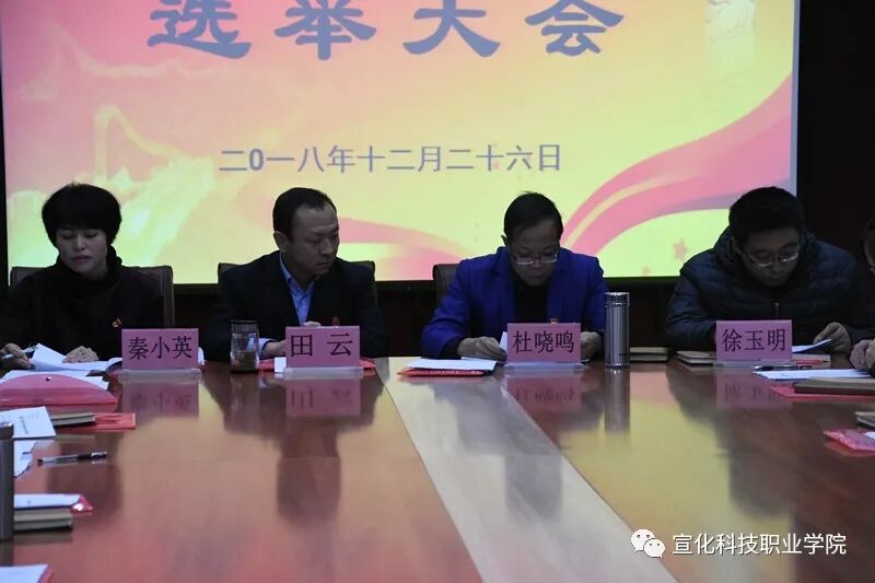 學院黨委委員、副院長田云、杜曉鳴出席該系黨總支選舉大會。選舉大會由田云副院長主持,大會在莊嚴的國歌聲中拉開帷幕。